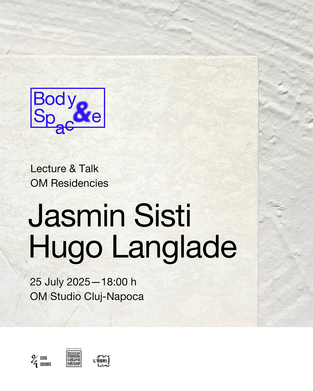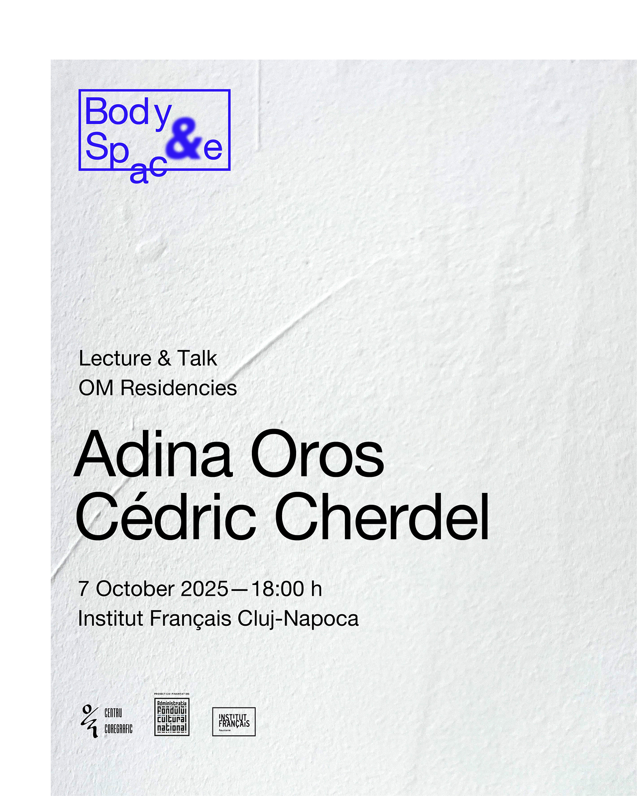 Programul de rezidențe OM - Corp & Spațiu se încheie cu ultima rezidență care i-a adus împreună, timp de o lună la OM Studio, pe artiștii Cédric Cherdel [fr] și Adina Oros [ro]. Marți, 7 octombrie, de la ora 18:00 la sediul Institutului Francez din Cluj-Napoca, cei doi artiști vor prezenta publicului universul lor creativ.