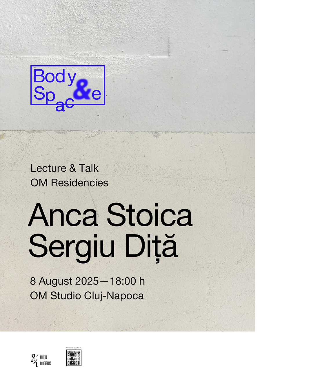După o lună de rezidență în cadrul programului OM – Corp & Spațiu, artiștii Constance Diard [fr] și Szilárd Gáspár [ro] prezintă publicului, vineri 29 august, rezultatele cercetării lor. Procesul lor artistic a adus împreună dansul, sculptura și performance-ul, deschizând un dialog între ordine și dezordine, forță și fragilitate, corp și materie.
